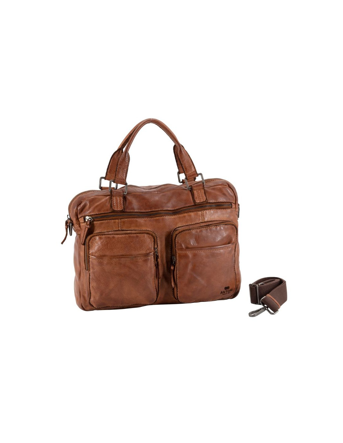 PORTADOCUMENTOS de piel vacuna. Cierre con cremallera, varios bolsillos en el interior i exterior. Bolsillo trasero con tira para maleta.