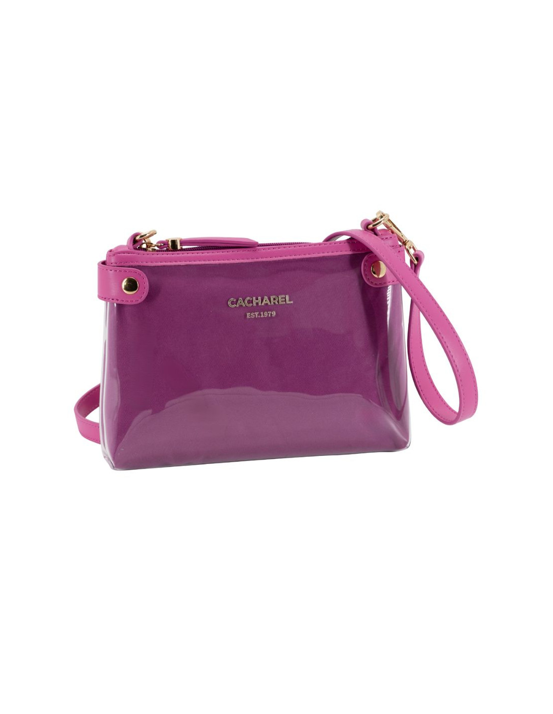 Bandolera de vinilo forma parte de la cápsula arcoíris siendo tendencia para esta primavera y verano que está a la vuelta de la esquina. Esta compuesto por un vinilo transparente, con el logo de CACHAREL grabado en relieve en la parte delantera, combinado con una lona al tono y material vegano del mismo color. Cierre con cremallera para mayor seguridad y asa bandolera regulable.
