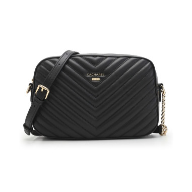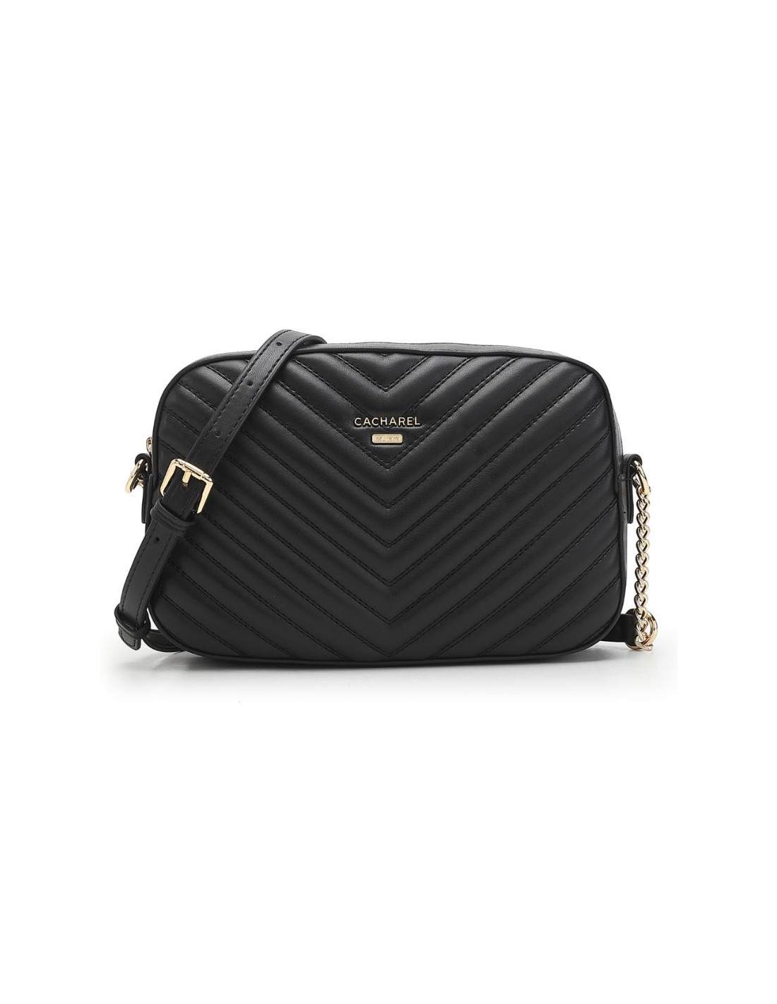Bolso bandolera con novedoso acolchado en espiga combinado con asa bandolera de cadena y tira regulable con hebilla. Cierre con cremallera. Logo metálico en la parte delantera del bolso. Tiradores personalizados y varios bolsillos interiores.