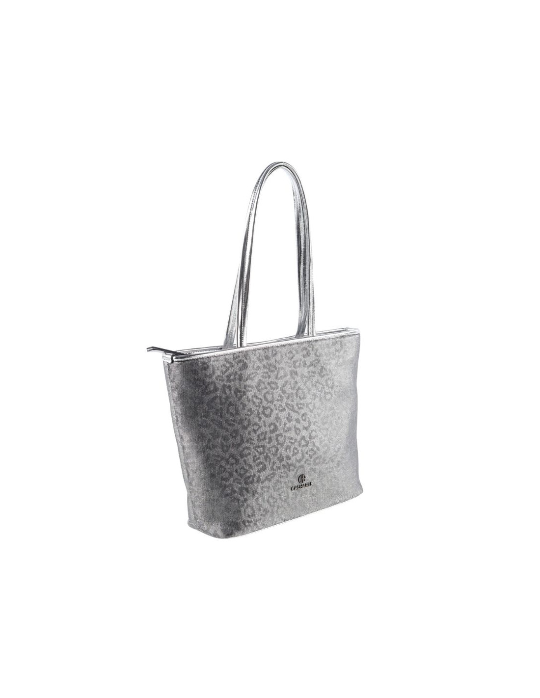 El bolso de neopreno color plata forma parte de la cápsula print siendo tendencia para este otoño-invierno que está a la vuelta de la esquina. Cierre con cremallera para mayor seguridad. El logo de CACHAREL en metal de color negro en la parte delantera.