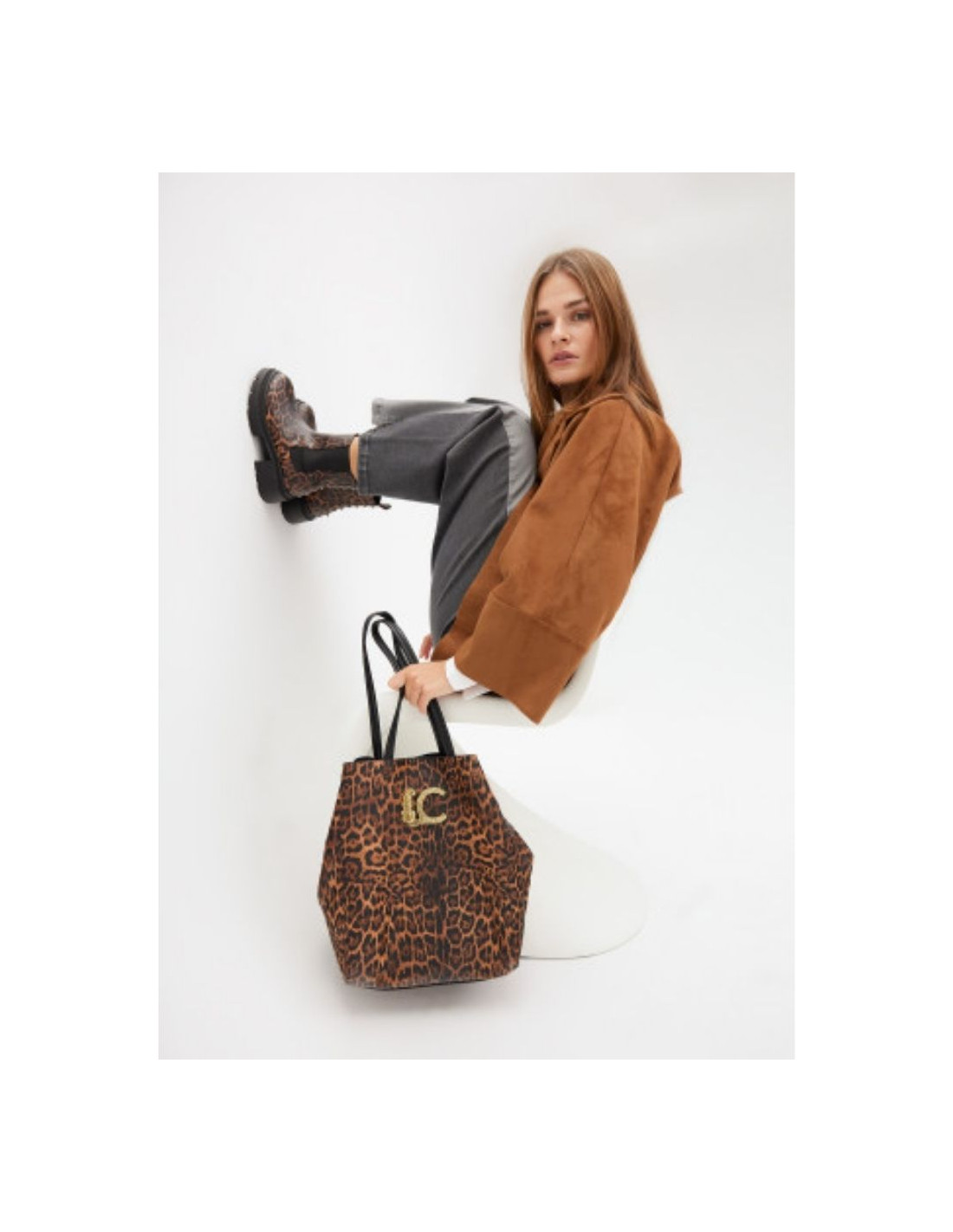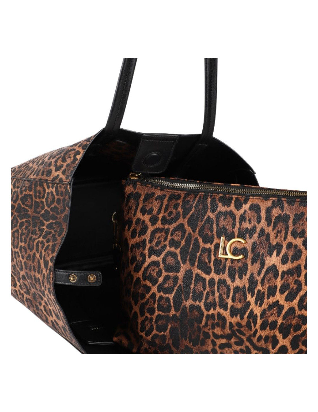 Bolso shopper espacioso con estampado animal print de leopardo. Incluye detalles de logo LC en metal. Fabricado en material resistente con asas largas para mayor comodidad. Interior amplio con cierre de cremallera.