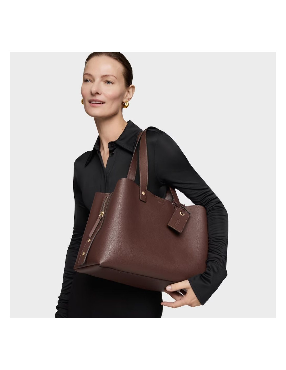 Bolso city mediano TOUS The Citybow de poliuretano en color marrón. Cierre con botón magnético. Bolsillo interior con cremallera. Asa fija de hombro. Medidas (alto x ancho x fondo): 19 x 39 x 24 cm.