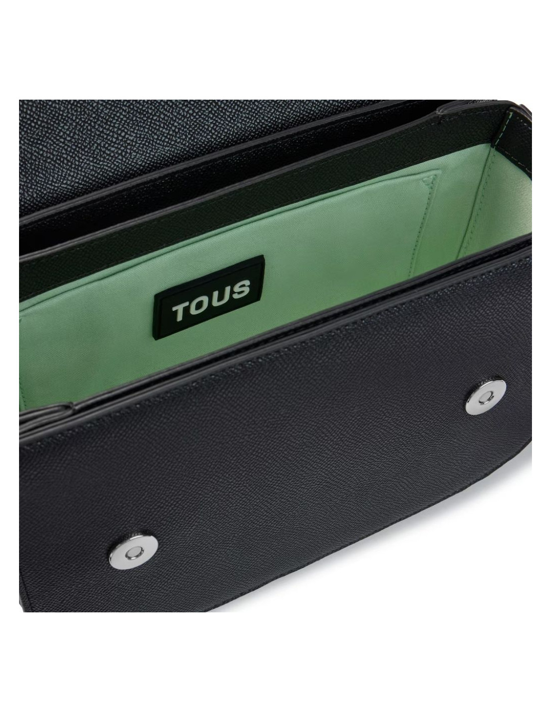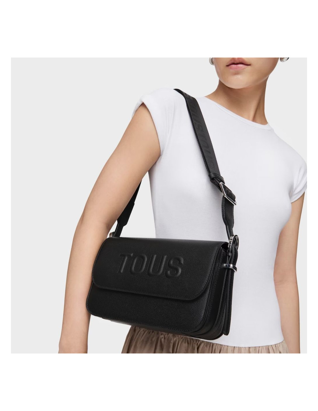 Bolso bandolera mediano TOUS Brenda de poliuretano en color negro. Cierre de solapa con botón magnético. Bolsillo interior abierto. Asa bandolera ajustable. Medidas (alto x ancho x fondo): 17 x 28 x 7 cm.