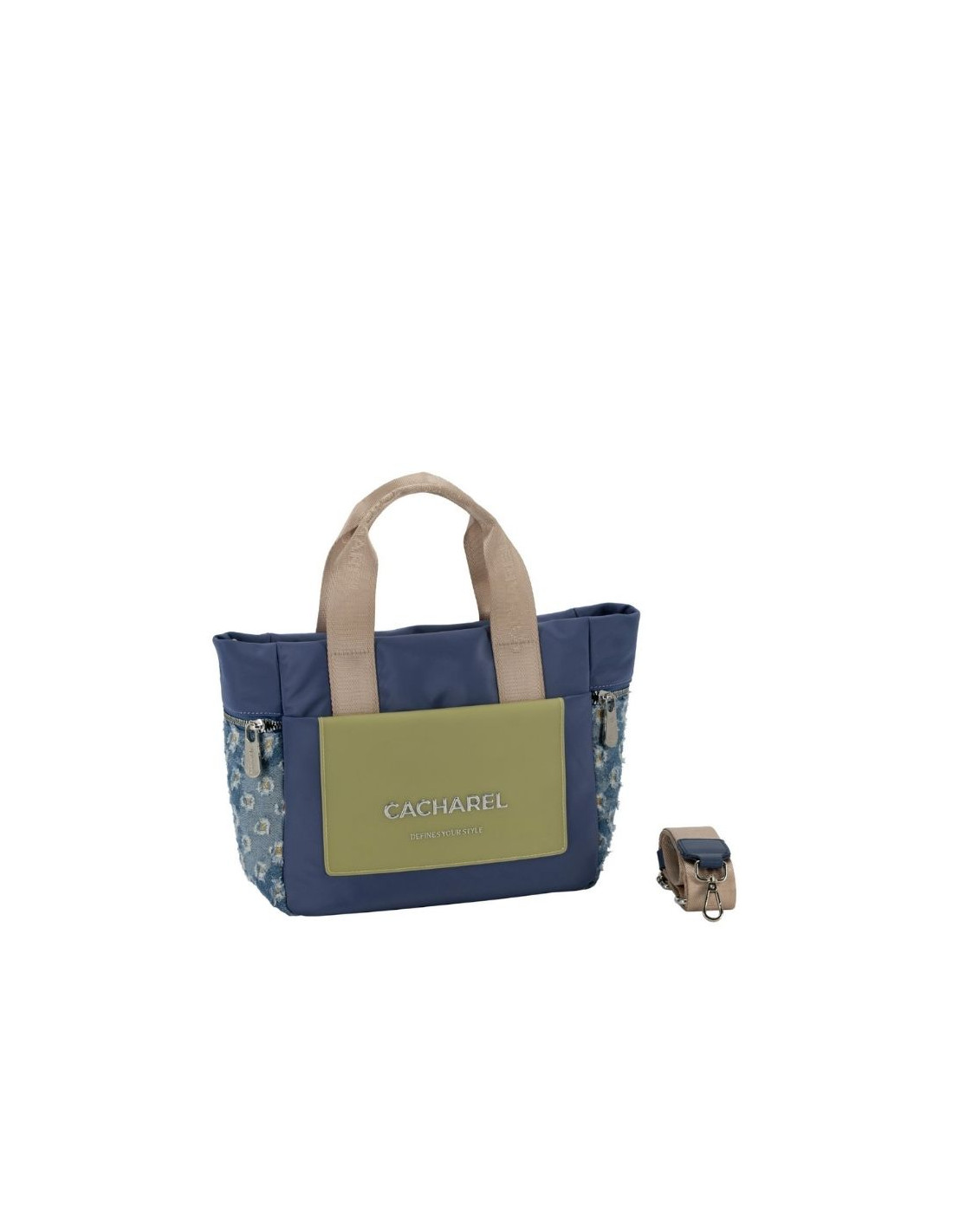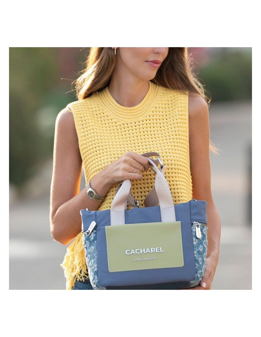 Bolso tipo tote mediano confeccionado en nylon, un material ligero y resistente, ideal para el uso diario. Su diseño combina bloques de color modernos y frescos, aportando un estilo actual y desenfadado.