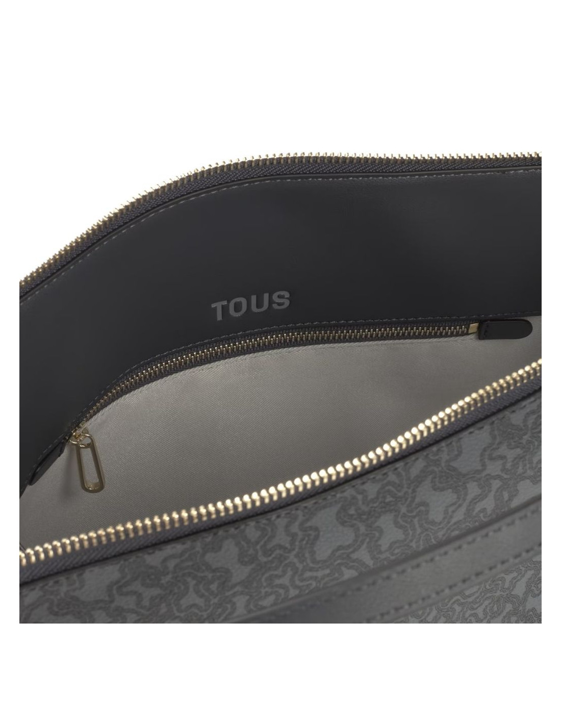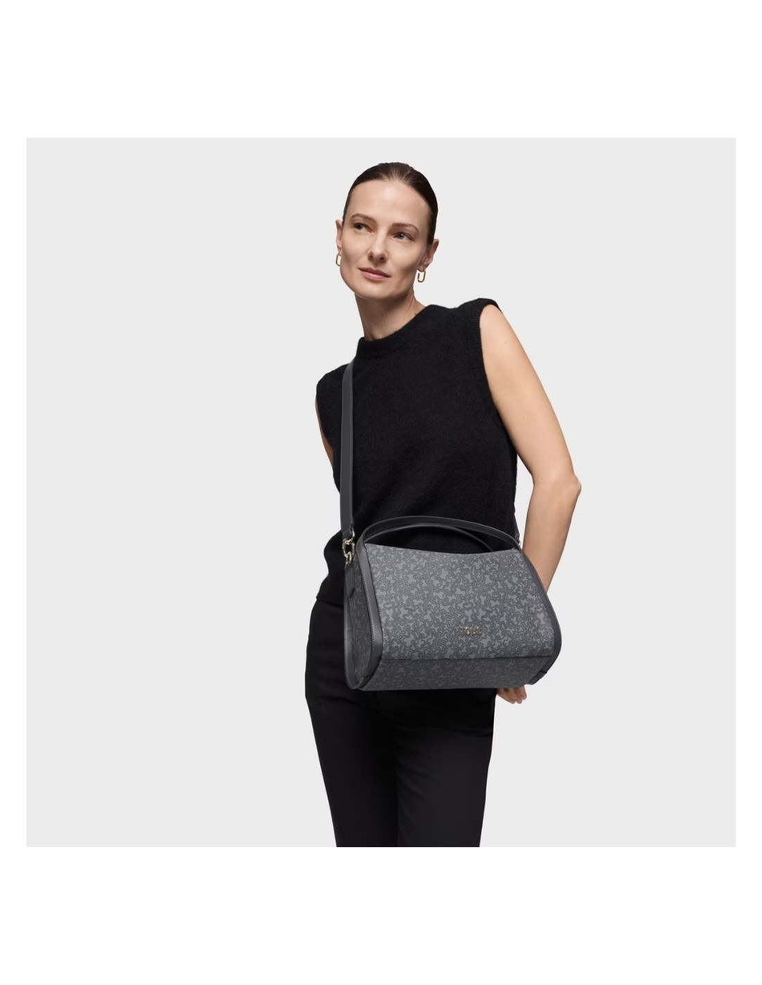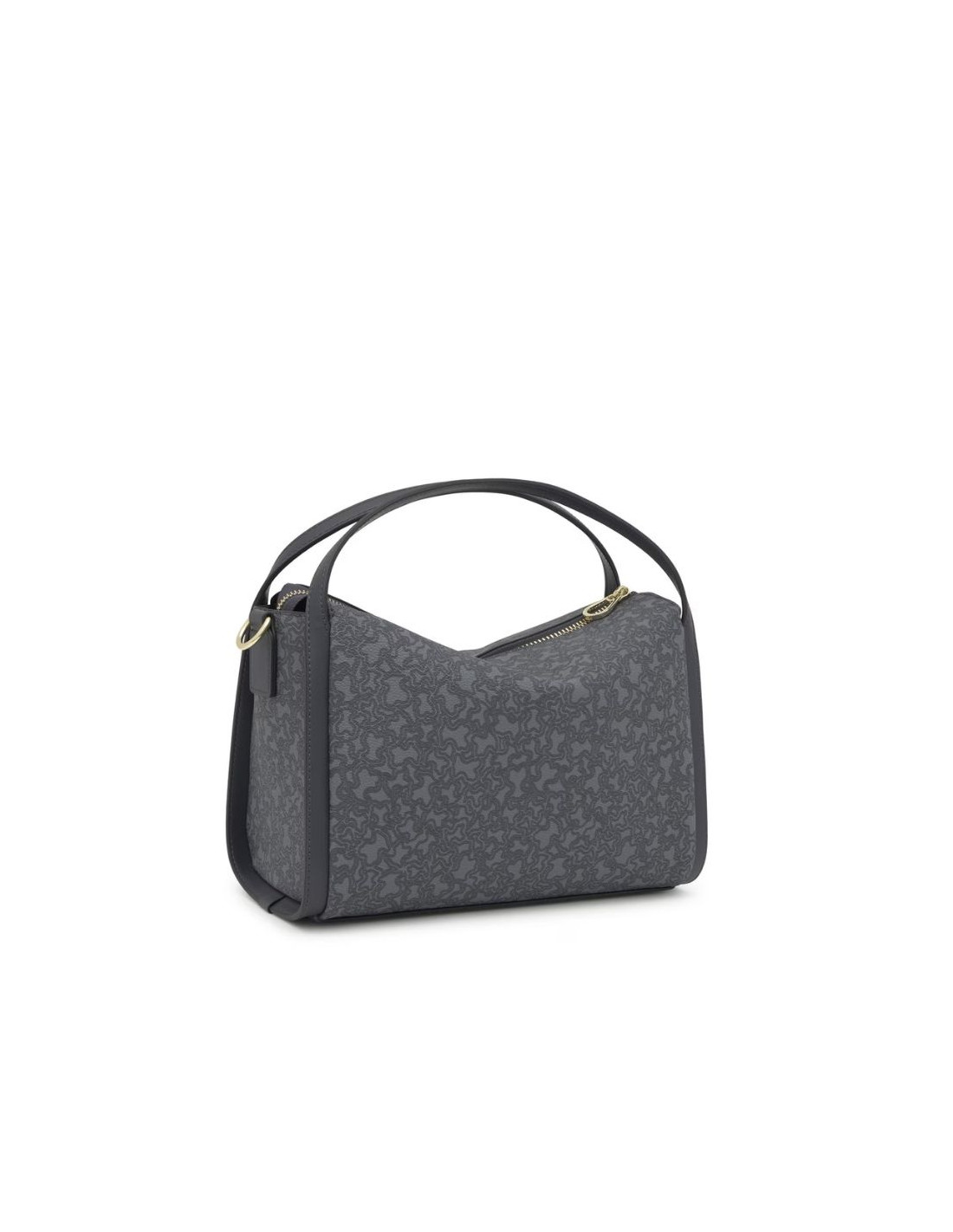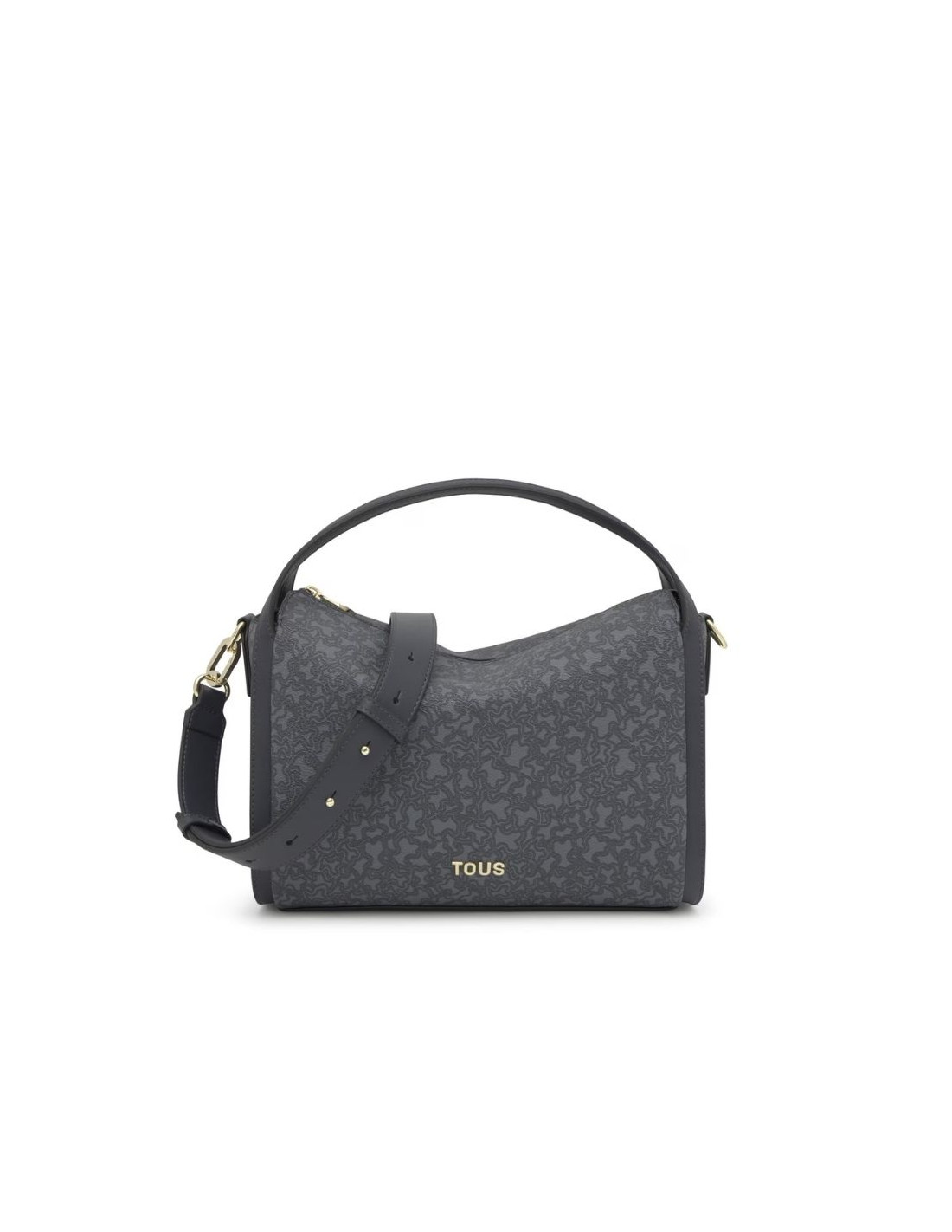 Bolso estilo city mediano Kaos Mini Lines de lona con detalles de piel sintética en color gris oscuro. Cierre de cremallera. Bolsillo interior abierto. Asa fija de hombro y asa bandolera ajustable y desmontable. Medidas (alto x ancho x fondo): 22 x 28,5 x 15 cm.