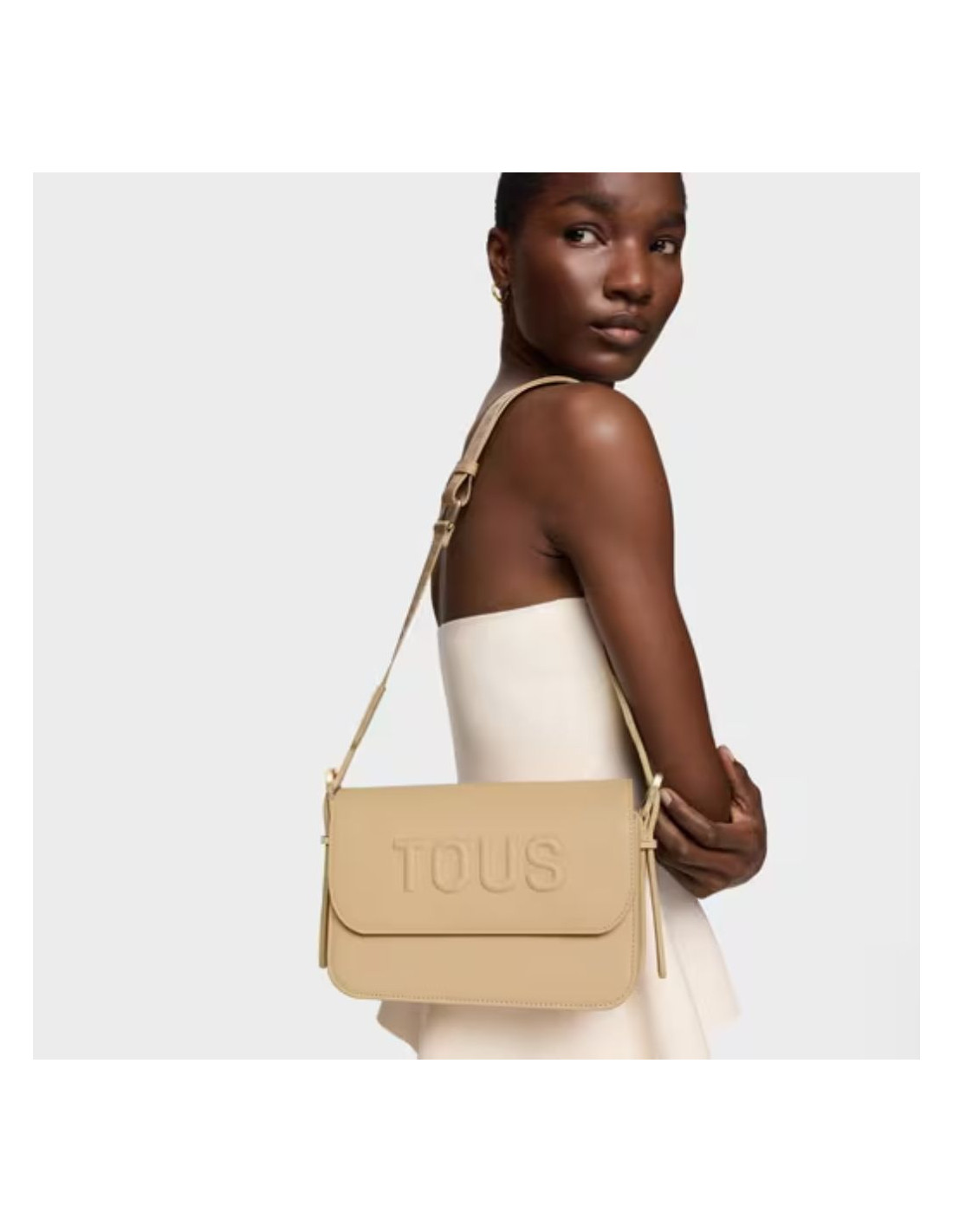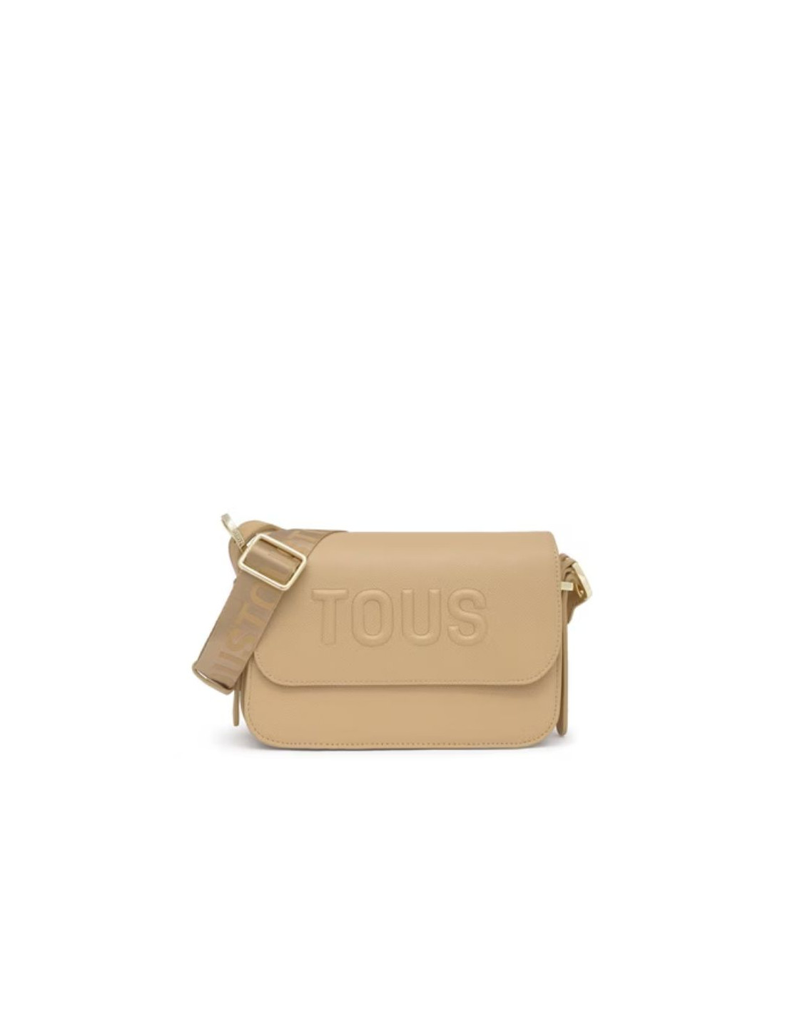 Bolso bandolera mediano TOUS Brenda de poliuretano en color arena. Cierre de solapa con botón magnético. Bolsillo interior abierto. Asa bandolera ajustable. Medidas (alto x ancho x fondo): 17 x 28 x 7 cm.