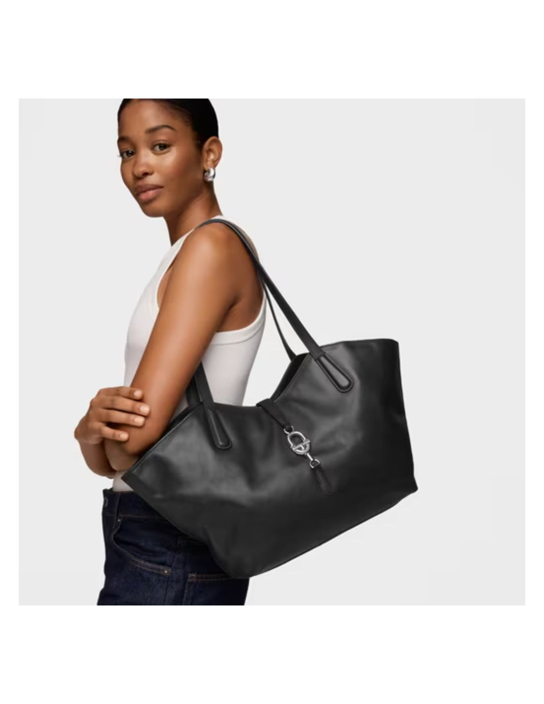 Bolso capazo mediano TOUS MANIFESTO de piel vacuna con certificación LWG en color negro. Cierre de tira con logo MANIFESTO. Bolsillo interior con cierre de cremallera. Dos asas fijas de hombro. Medidas (alto x ancho x fondo): 27 x 51 x 27 cm.
