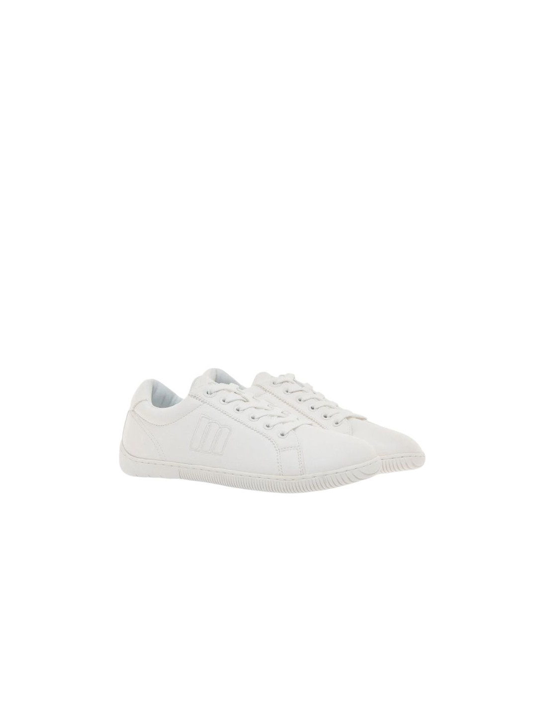 Zapatilla deportiva Free Aria Mustang para chica, inspirada en la clásica bamba blanca. Como detalle tiene el logo de la marca cosida en el lateral de la zapatilla. Diseñadas y desarrolladas especialmente en colaboración con el Dr. Juanjo López, traumatólogo deportivo, para respetar el desarrollo natural del pie. Se trata de un calzado minimalista que gracias a su puntera ancha, suela totalmente plana (cero drop) y flexibilidad, mejora la anatomía del pie y favorece una mejor posición del mismo. Se vende con una plantilla de transición para hacer el cambio de calzado convencional a minimalista de manera progresiva. Certificado por INESCOP como vegano, garantiza que en su fabricación no se han utilizado ningún material de origen animal.