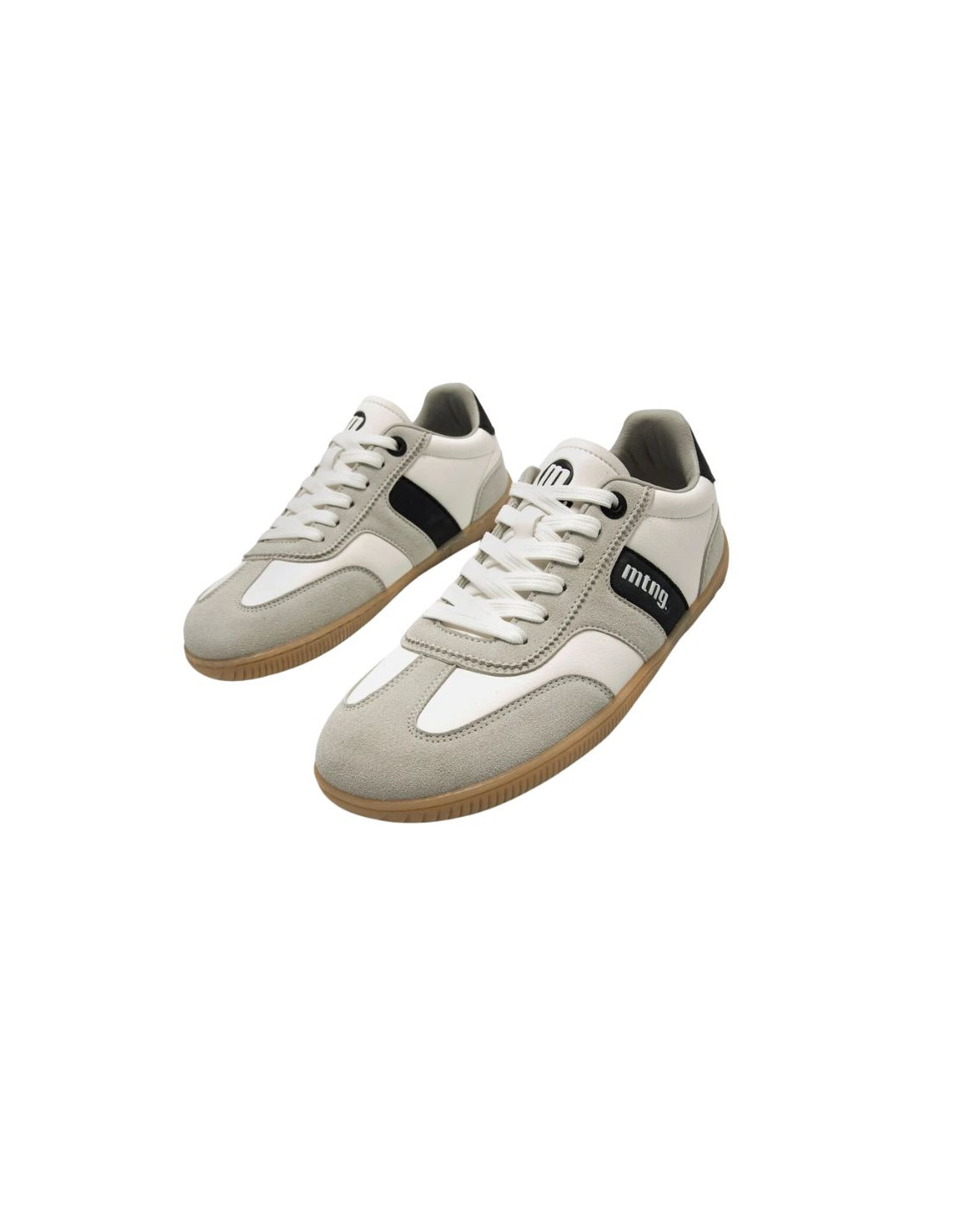 Zapatillas de color blanco para mujer, modelo Free Aria de la marca Mustang con detalles en gris y negro. La suela de color caramelo realza su diseño retro. Incorporan cierre con cordones para mayor comodidad. Diseñadas y desarrolladas especialmente en colaboración con el Dr. Juanjo López, traumatólogo deportivo, para respetar el desarrollo natural del pie. Se trata de un calzado minimalista que gracias a su puntera ancha, suela totalmente plana (cero drop) y flexibilidad, mejora la anatomía del pie y favorece una mejor posición del mismo. Se vende con una plantilla de transición para hacer el cambio de calzado convencional a minimalista de manera progresiva. Con certificado VEGANO sellado por INESCOP, el cual garantiza que la naturaleza química principal del material no se corresponde con fibras de origen animal.