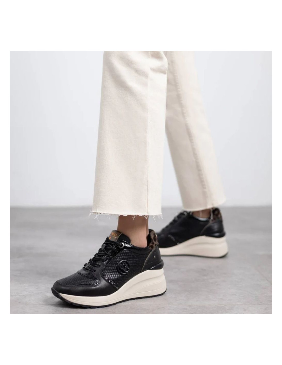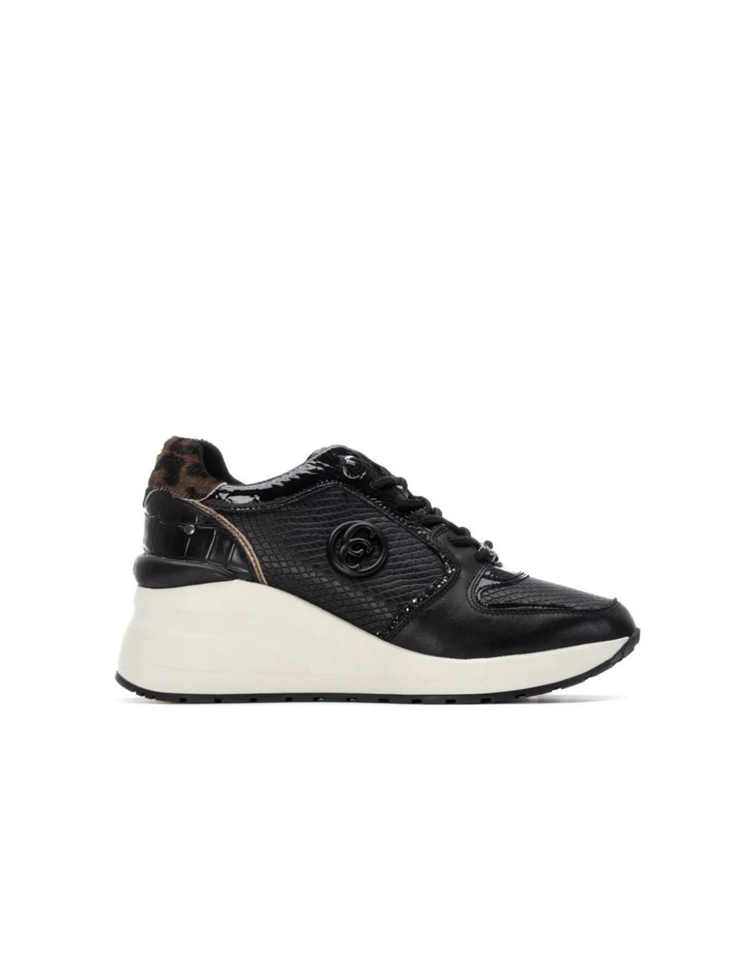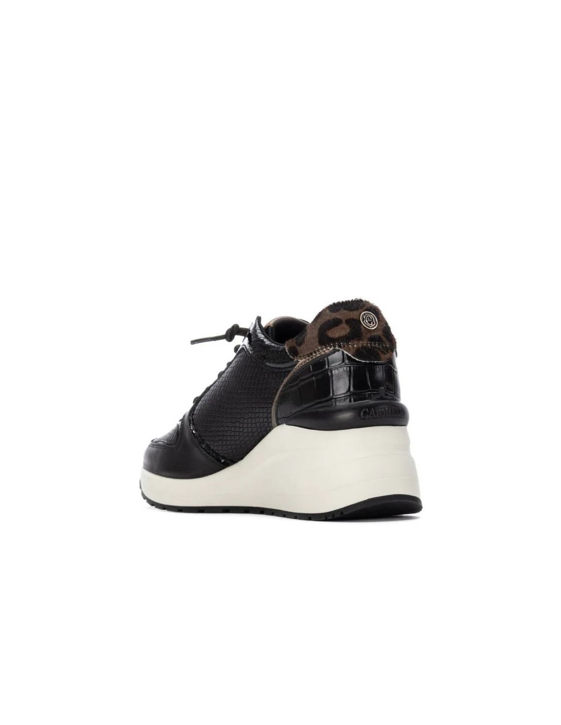 Zapatilla de mujer, de la marca Carmela. Fabricada en piel de alta calidad. Cierre mediante cordones. Detalle de pieza trasera con estampado. Suela de goma antideslizante. Plantilla extraíble.