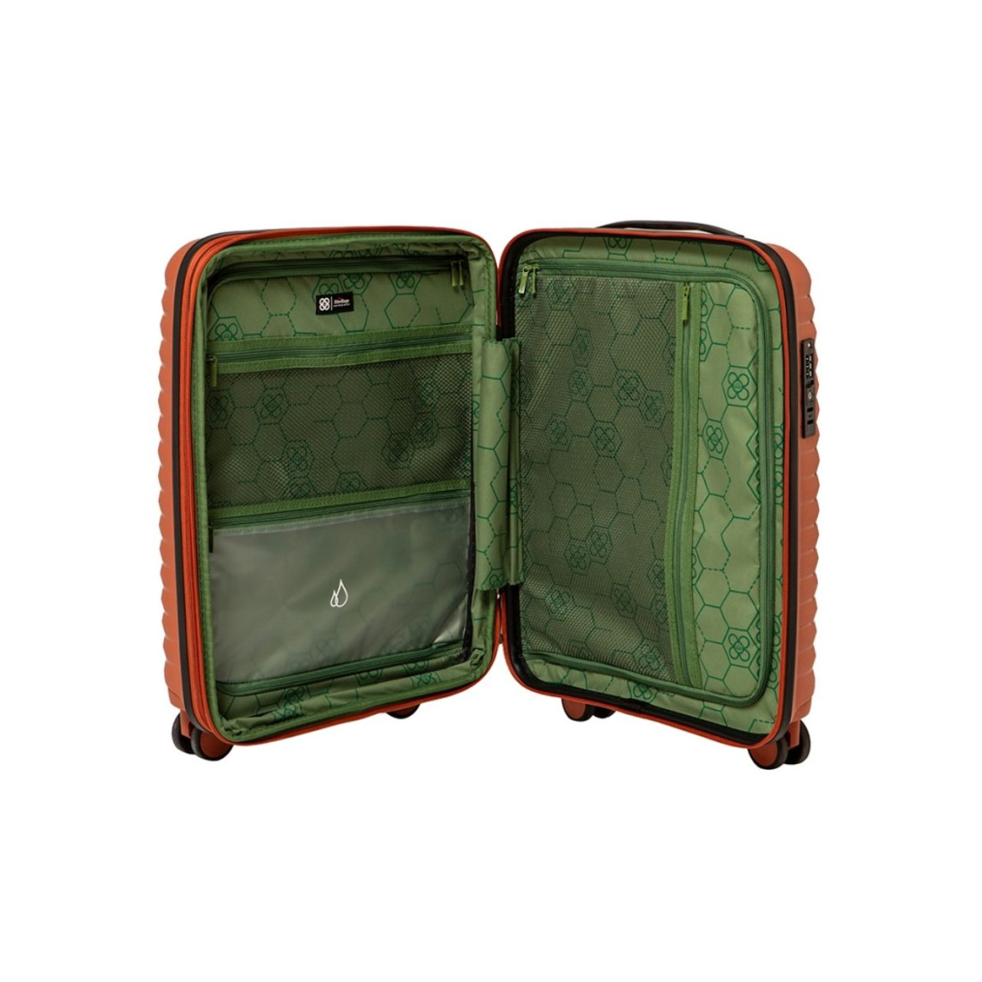La maleta Ecowave se inspira en las olas del mar y sus líneas le confieren una resistencia especial a los impactos. Es la primera maleta ecológica de StiviBags, utilizando botellas de plástico RPET para la confección del forro interior. Las ruedas dobles silenciosas harán que tu viaje no despierte más que admiración.