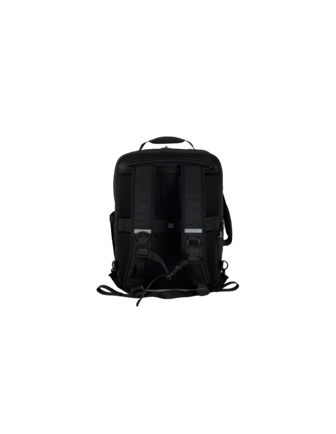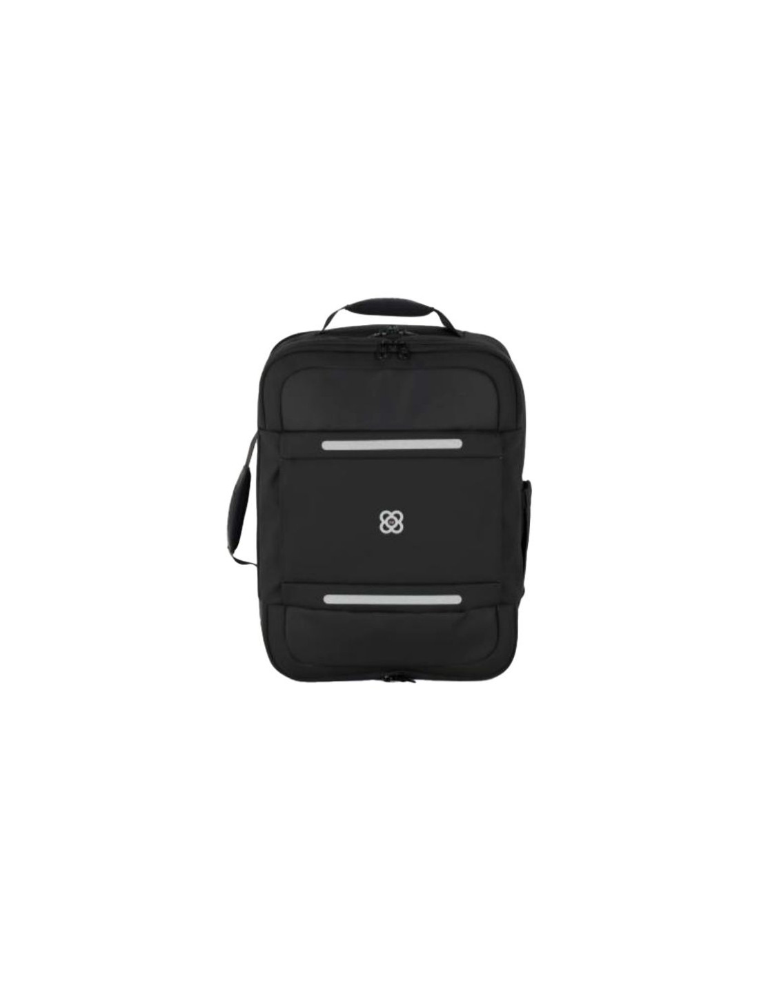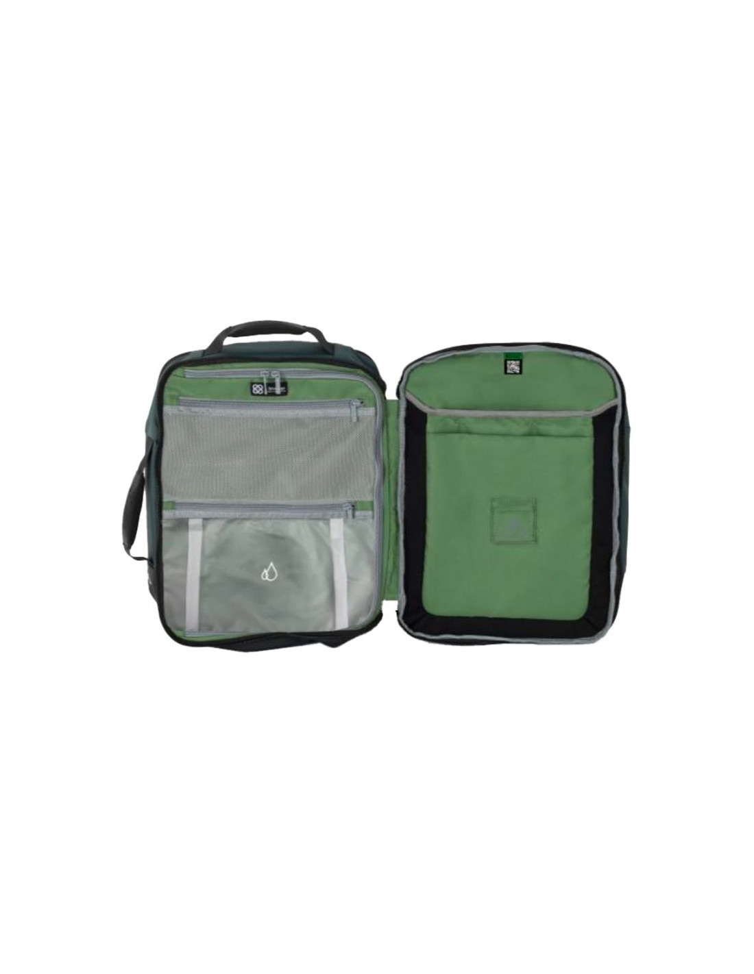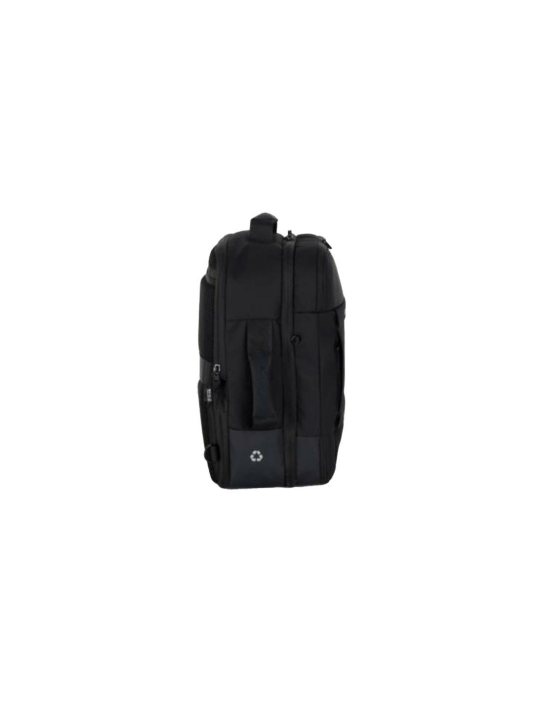 3 compartimentos frontales + compartimento impermeable para calzado, bolsillo RFID exterior para documentos, asas ergonómicas acolchadas en neopreno, compartimentos interiores para tablet 10" y portátil 15,6", asas mochila extraíbles con sujeción frontal reflectante, sistema expansible 360º, compatible con trolley, base waterproof en color negro, detalles reflectantes y pieza para candado, interior y exterior en material reciclado RPET