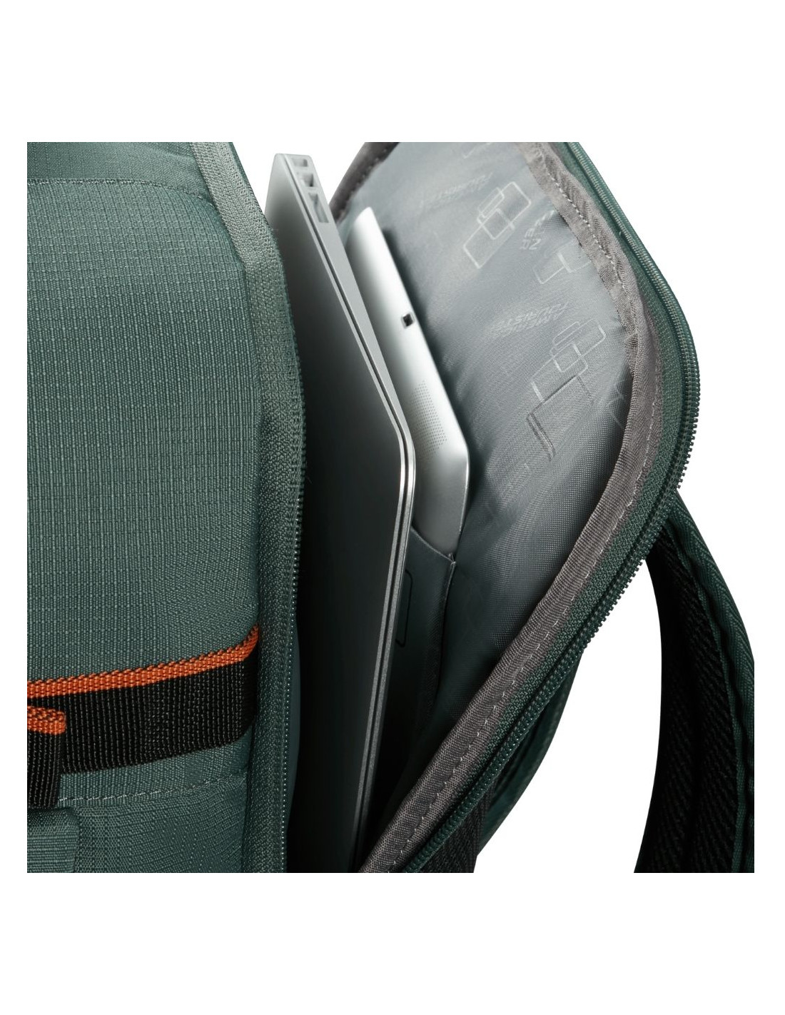 Material El 100% del peso del forro interior, la capacidad de expansión y las cremalleras está fabricado con plástico PET reciclado posconsumo, utilizando 16 botellas recicladas de 500 ml.