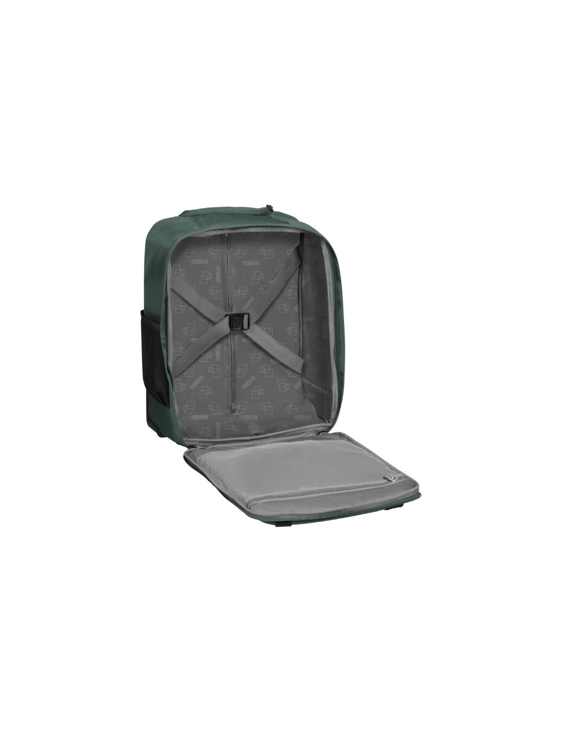 Material El 100% del peso del forro interior, la capacidad de expansión y las cremalleras está fabricado con plástico PET reciclado posconsumo, utilizando 17 botellas recicladas de 500 ml.