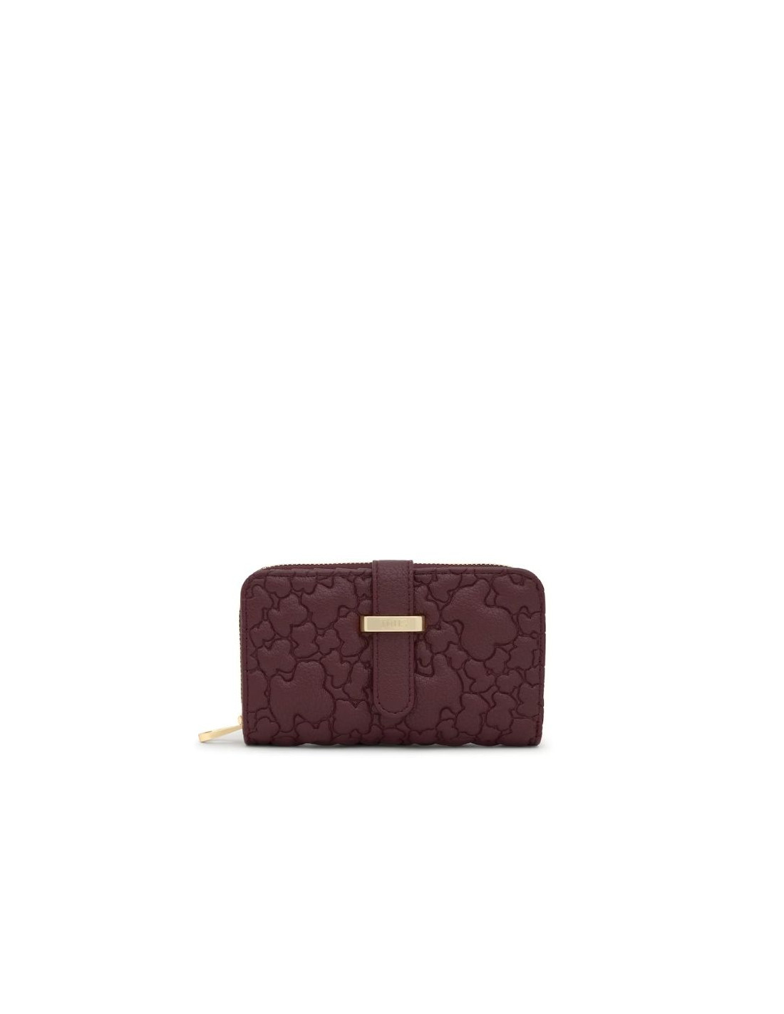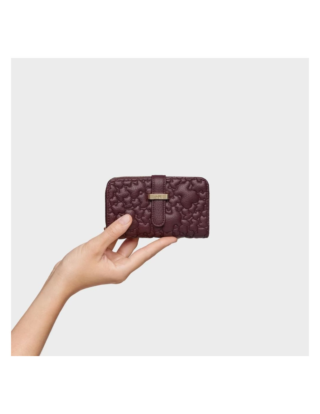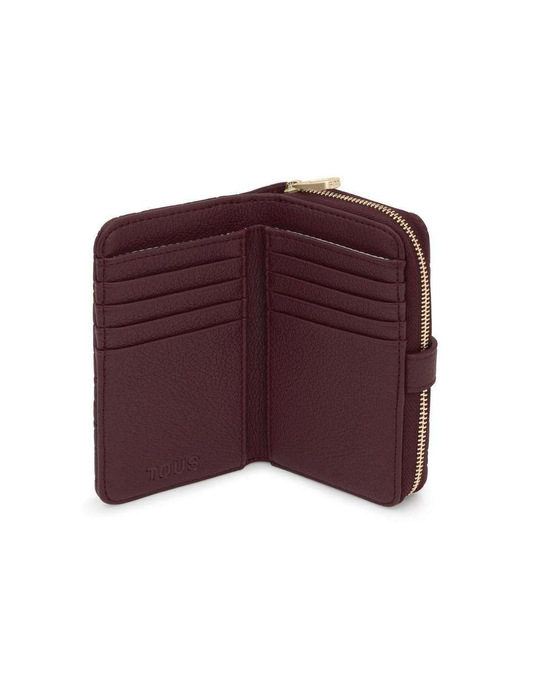 Billetera Bridge Puffy bear de poliuretano en color burdeos. Cierre botón a presión y cremallera. En el interior contiene un compartimento para billetes, ocho ranuras para tarjetas y dos compartimentos para monedas. Medidas (alto x ancho x fondo): 9 x 13,5 x 3 cm.