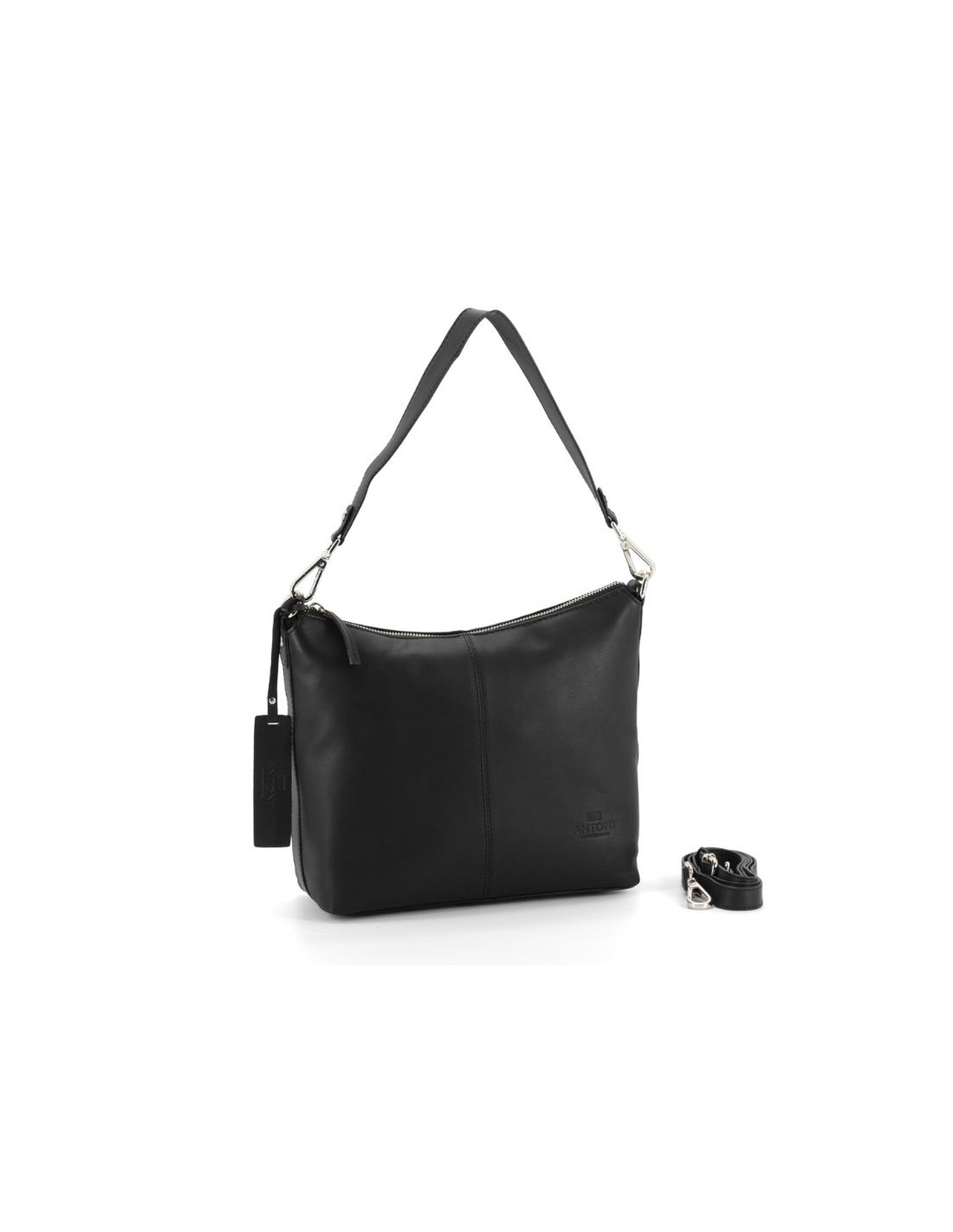 Shopper de piel vacuna. Cierre con cremallera, asa de hombro y asa regulable, bolsillo exterior y varios bolsillos internos.