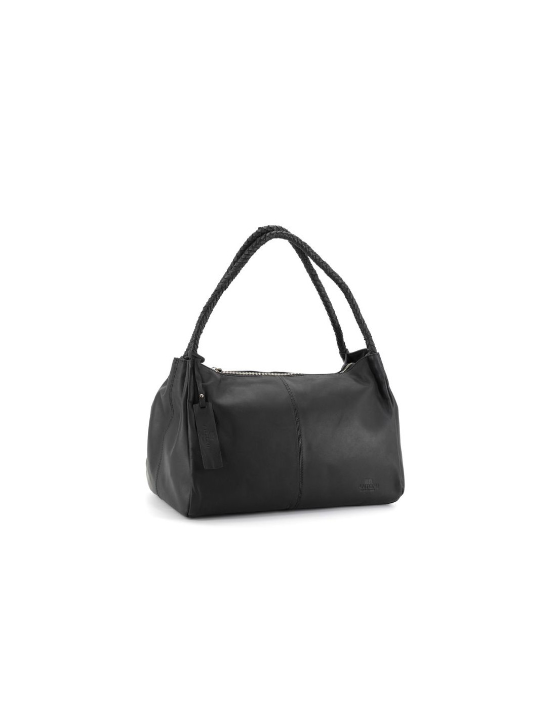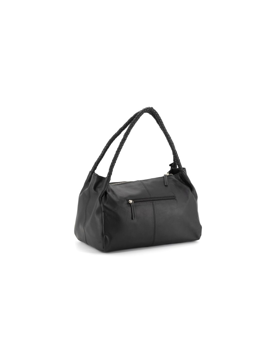 Maxi Shopper de piel vacuna. Cierre con cremallera, asa de hombro con detallete trenzado. Bolsillo exterior y varios bolsillos internos.