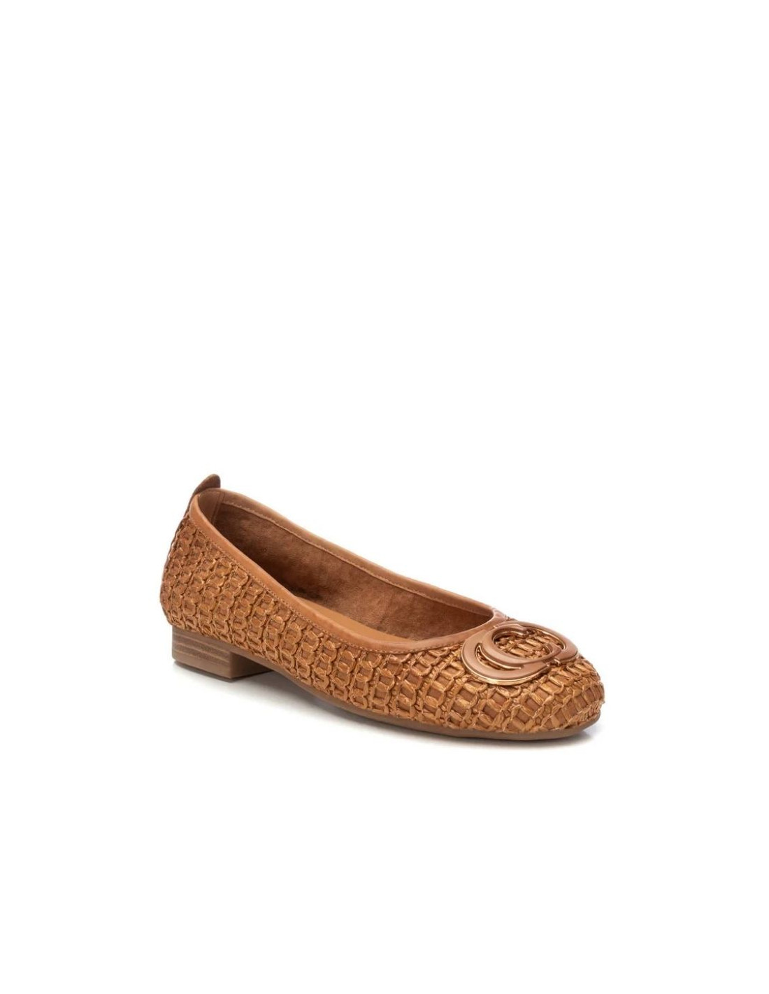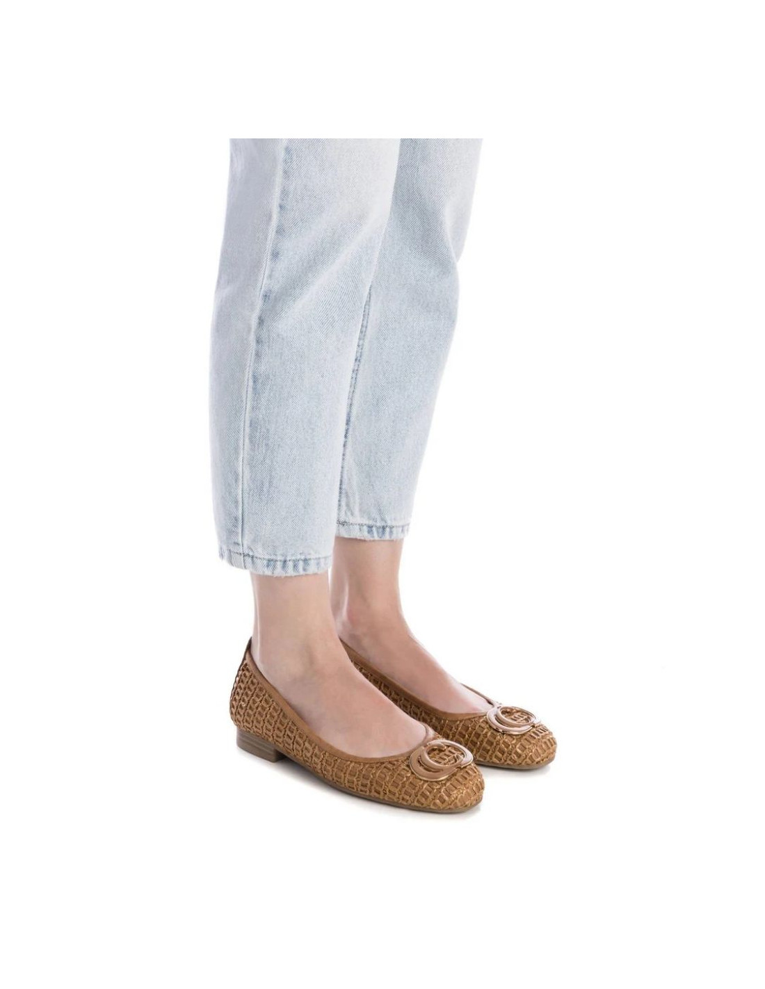 Bailarina de mujer de la marca Carmela. Fabricado en rafia de alta calidad. Frente decorativo, diseño elegante y sofisticado. Tirador trasero para facilitar la puesta. Modelo imprescindible esta temporada.