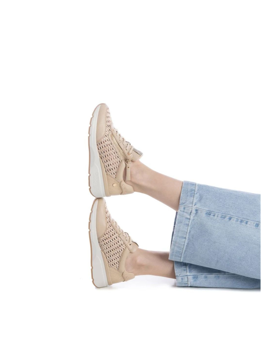 Zapatilla de mujer de la marca Carmela. Fabricada en piel de alta calidad. Cierre mediante cordones ajustables y cremallera. Con material de rejilla en lateral y puntera. Suela de goma antideslizante. Con plantilla extraíble.