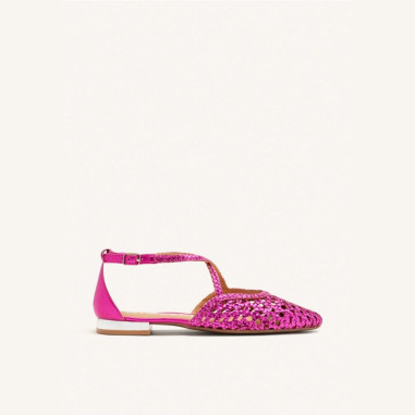 Bailarinas de piel color fucsia con punta fina, piel con trenzados y detalle de trenzas sobre el empeine. Cierre ajustable al tobillo para una mayor sujeción. Forro de piel. Plantilla acolchada muy confortable de piel curtida en un proceso de curtición más sostenible bajo los estándares de Leather Working Group.