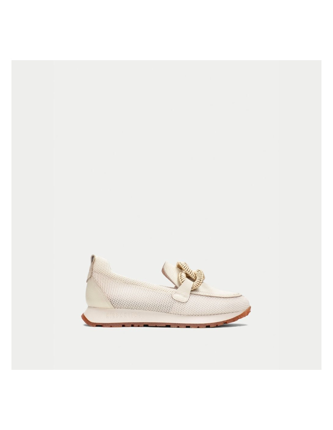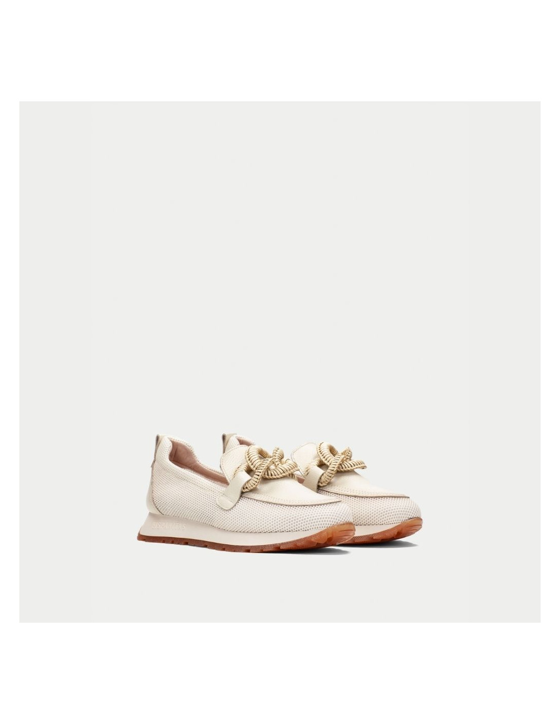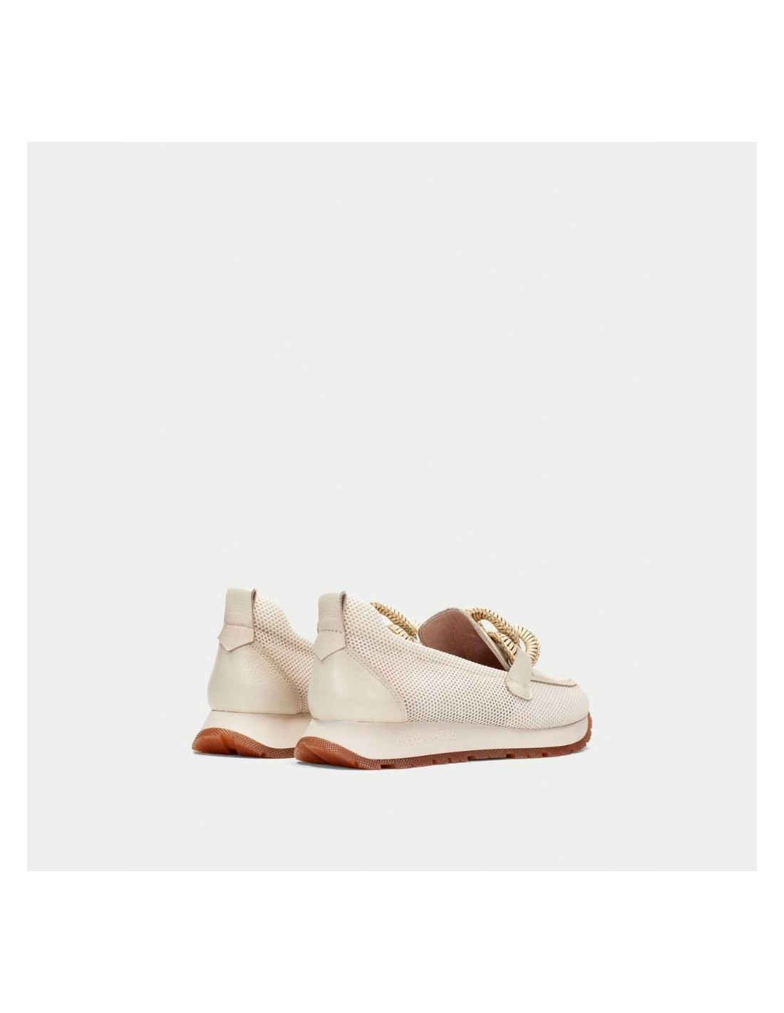 Mocasín deportivo color latte de estilo casual con detalle de cadenas de hilo confeccionadas a mano.