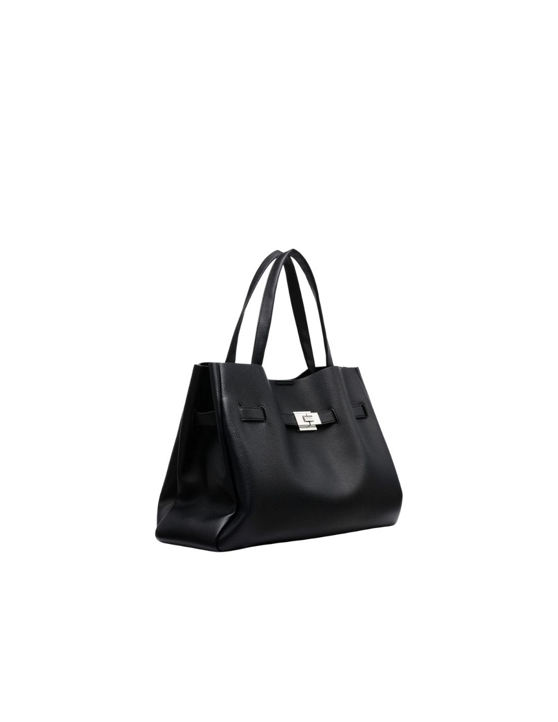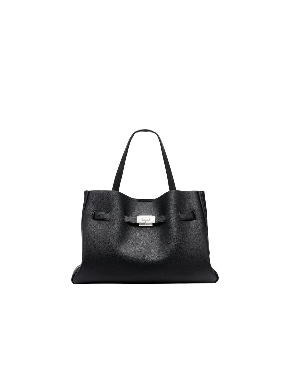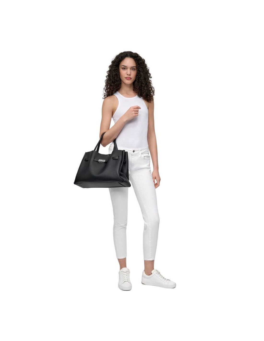 Bolso satchel grande de DKNY en color negro con herrajes plateados. Elegante, amplio y con diseño estructurado, ideal para looks urbanos y sofisticados.