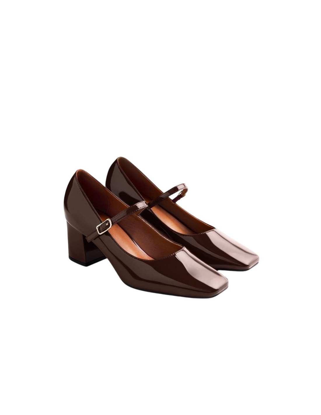 Zapatos estilo Mary-Jane con acabado en efecto charol. Punta cuadrada. Cuentan con planta acolchada, tacón tipo bloque y cierres ajustables en el empeine. Altura tacón: 5,5 cm.