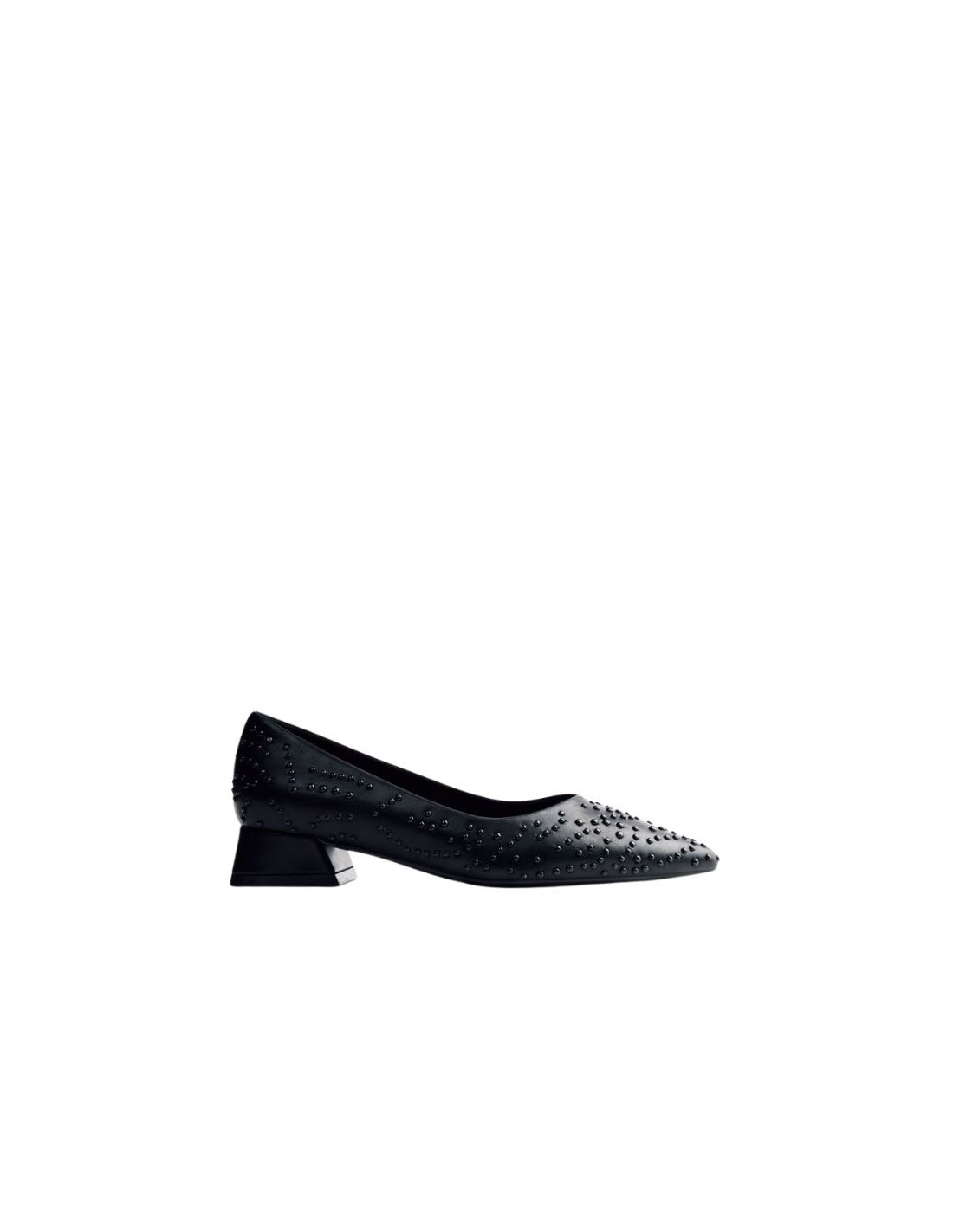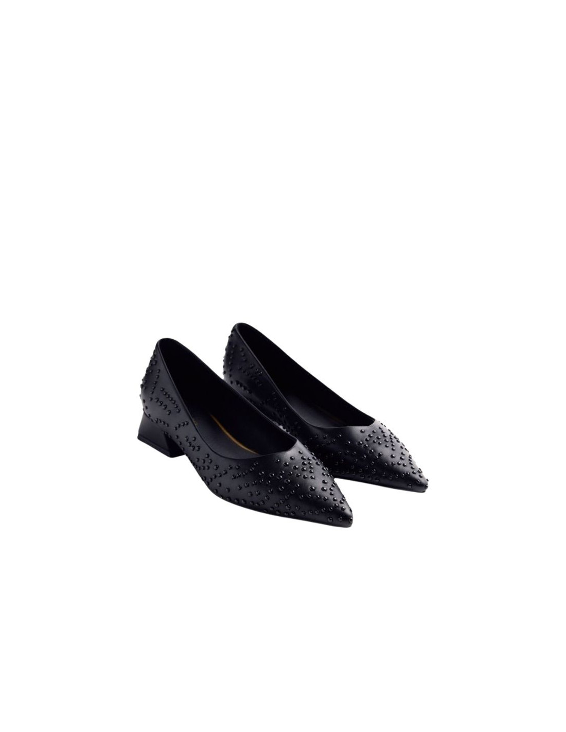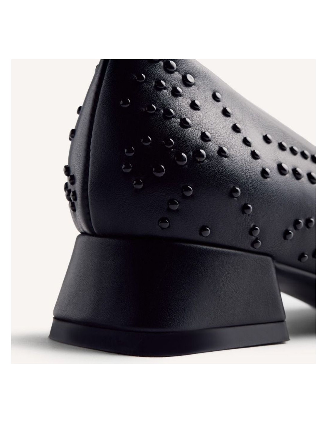 Zapatos de tacón tipo salones con tachas al tono. Cuentan con planta acolchada y tacón bajo tipo bloque. Altura tacón: 3 cm.