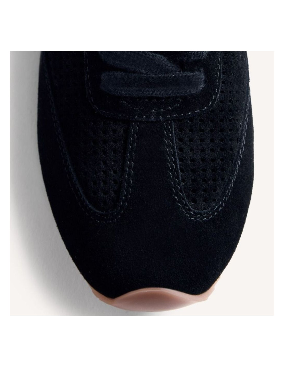 Zapatillas de piel serraje con microperforado. Este modelo destaca por su flexibilidad y ligereza al prescindir de topes y contrafuertes. Cuentan con plantilla acolchada y extraíble. Altura cuña: 1 cm.