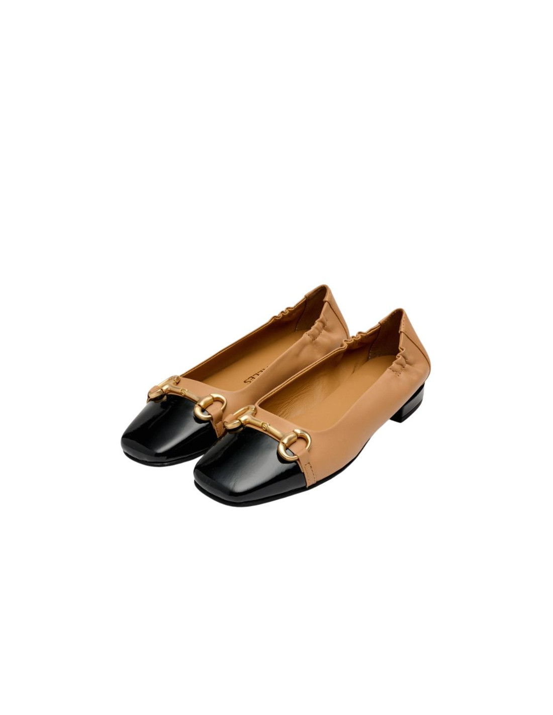 Bailarinas bicolor de piel de color marrón con adorno. Estas elegantes y versátiles bailarinas de piel destacan por sus refinados detalles. Perfecto para combinar con tus outfits diarios, así como con looks más elegantes para ocasiones especiales. El detalle fruncido trasero ofrece un mayor ajuste al pie. Altura del tacón: 2 cm