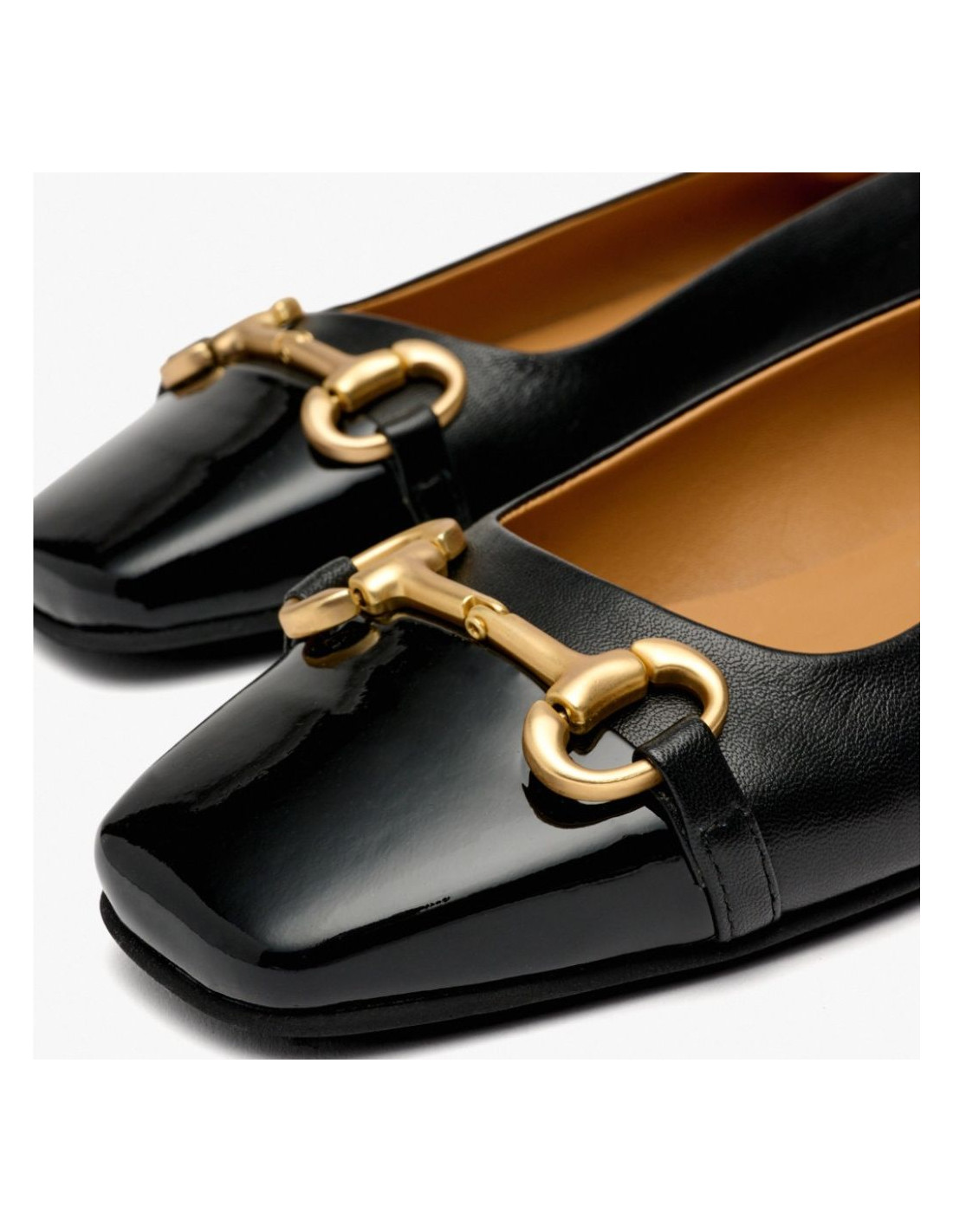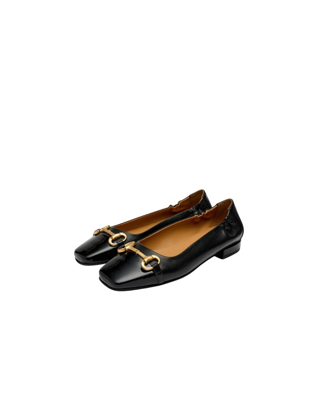 Bailarinas bicolor de piel de color negro con adorno. Estas elegantes y versátiles bailarinas de piel destacan por sus refinados detalles. Perfecto para combinar con tus outfits diarios, así como con looks más elegantes para ocasiones especiales. El detalle fruncido trasero ofrece un mayor ajuste al pie. Altura del tacón: 2 cm