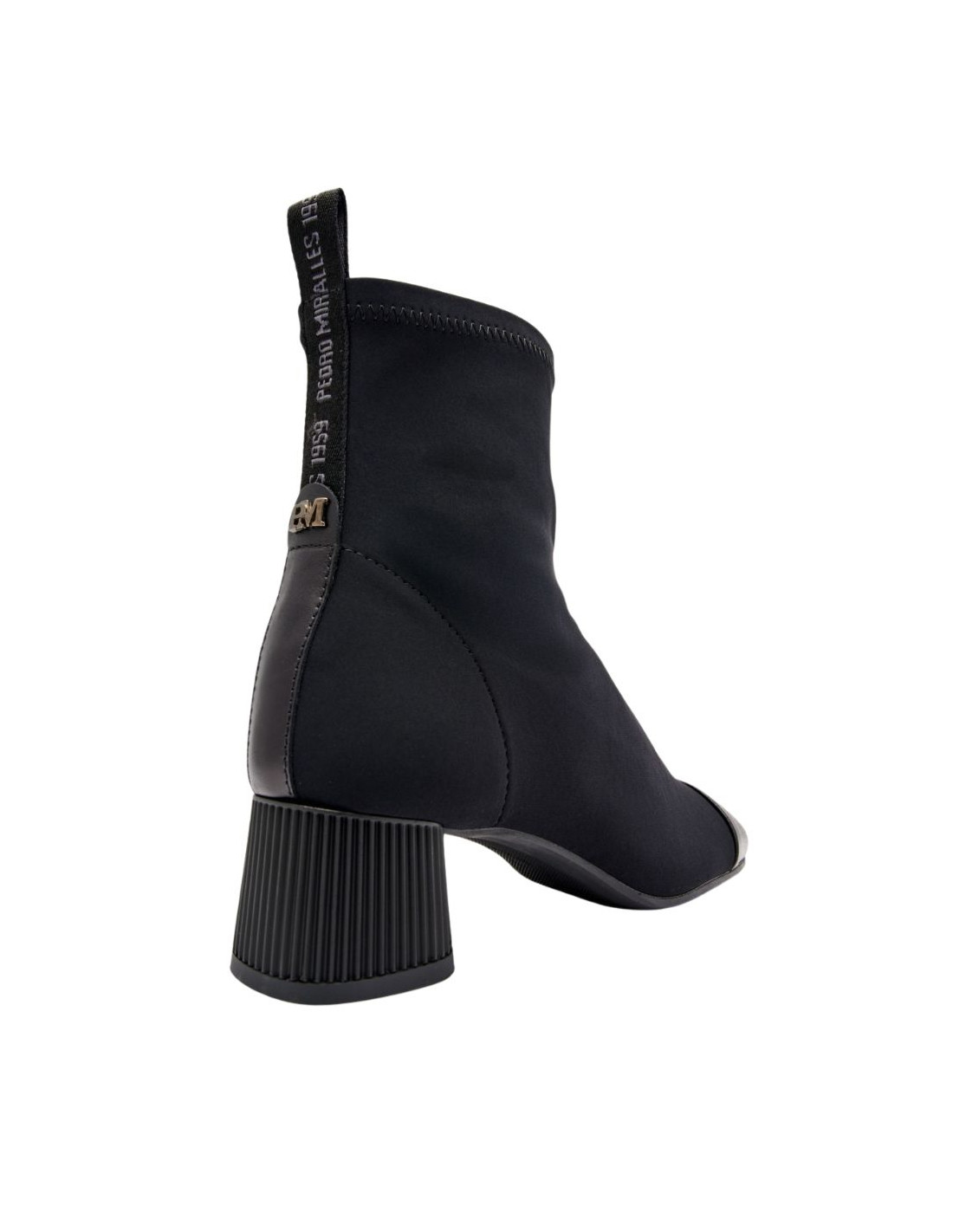 Botines de tejido elástico de color negro. Este modelo ofrece comodidad y un ajuste perfecto. Su diseño combina materiales, texturas y tonos para darle personalidad. Una opción ideal para llevar a diario combinando estilo y practicidad. Su tejido elástico permite calzarlo cómodamente.