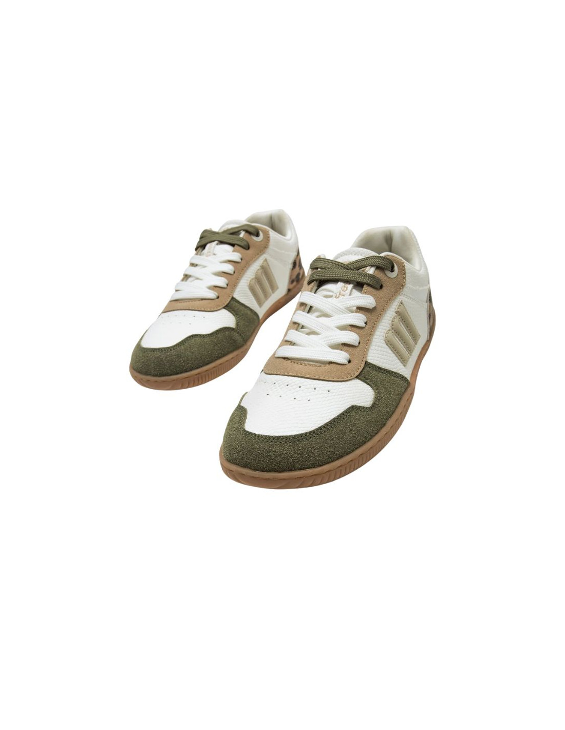 Zapatillas barefoot para mujer de la marca Mustang, modelo Free Aria de color blanco con detalles en verde y beige tipo ante. Este diseño combina una base texturizada con una trasera de animal print de leopardo que le aporta un toque actual y distintivo, mientras que los cordones bicolor en blanco y verde rematan un conjunto actual. Diseñadas y desarrolladas especialmente en colaboración con el Dr. Juanjo López, traumatólogo deportivo, para respetar el desarrollo natural del pie. Se trata de un calzado minimalista que gracias a su puntera ancha, suela totalmente plana (cero drop) y flexibilidad, mejora la anatomía del pie y favorece una mejor posición del mismo. Se vende con una plantilla de transición para hacer el cambio de calzado convencional a minimalista de manera progresiva. Con certificado VEGANO sellado por INESCOP, el cual garantiza que la naturaleza química principal del material no se corresponde con fibras de origen animal.
