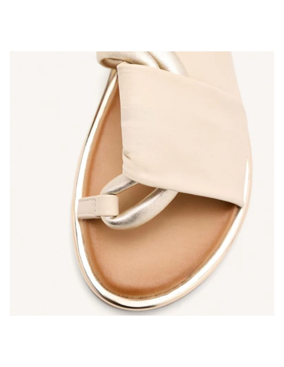 Sandalias planas tipo palas de piel con detalle metalizado. Cuentan con planta acolchada.