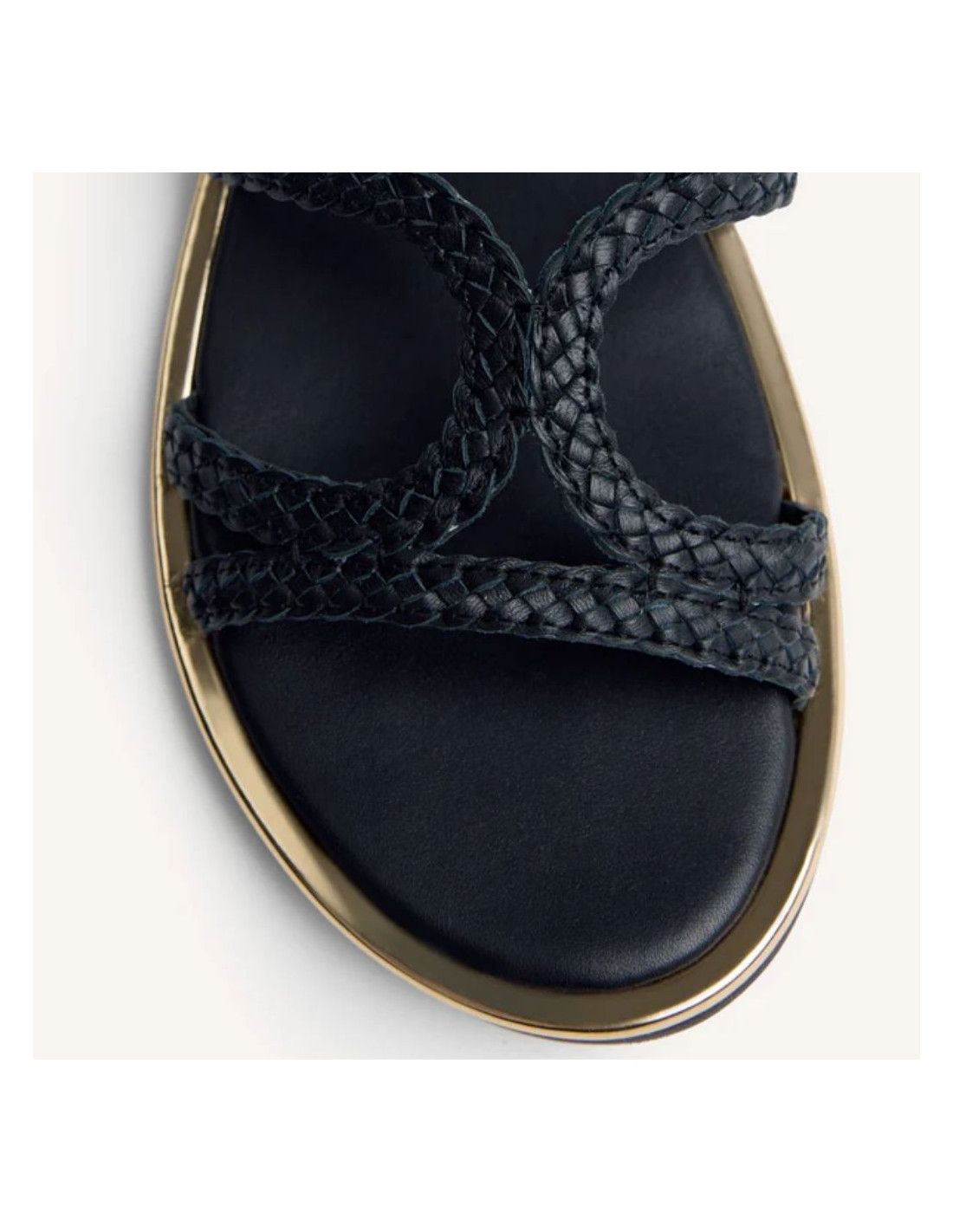 Sandalias planas de piel trenzada a mano. Cuentan con planta acolchada y cierres ajustables en el tobillo.